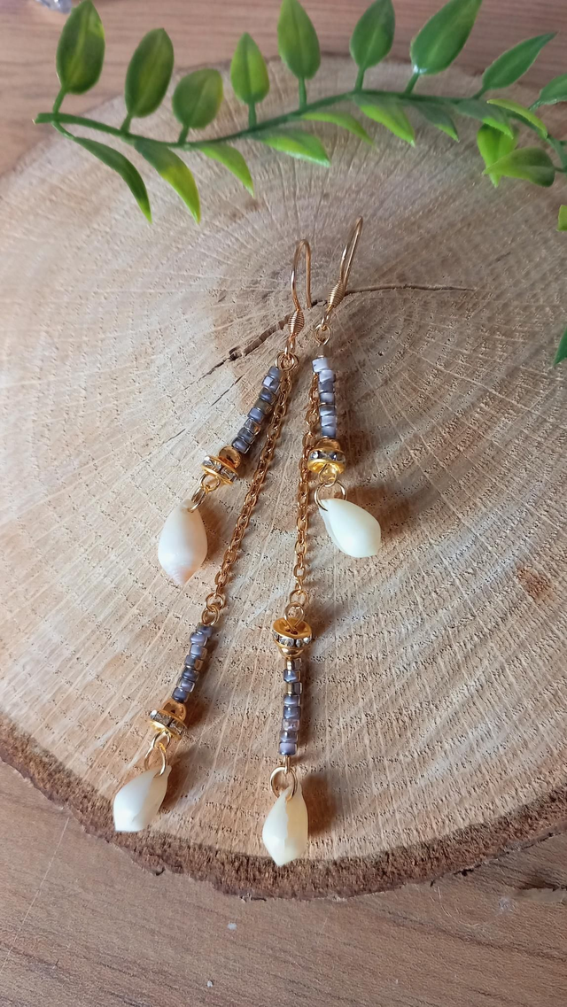 Boucles d'oreilles pendantes en acier inoxydable (sans allergènes) et petites perles